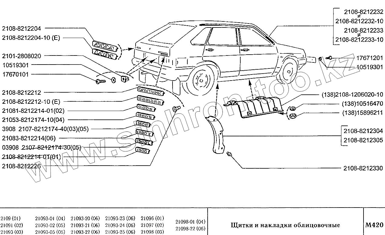 Каталог запасных частей к технике: ВАЗ-2109. Щитки и накладки облицовочные