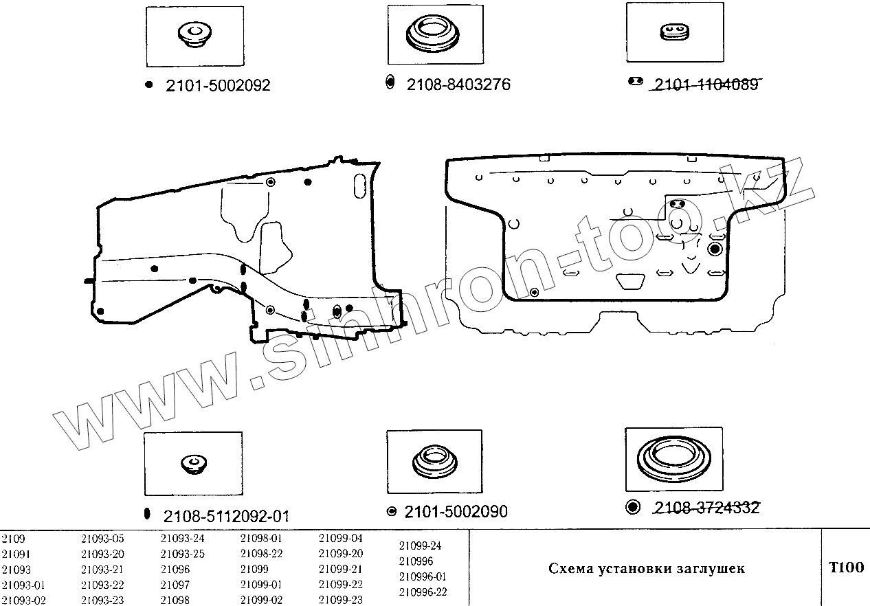 Каталог запасных частей к технике: ВАЗ-2109. Схема установки заглушек