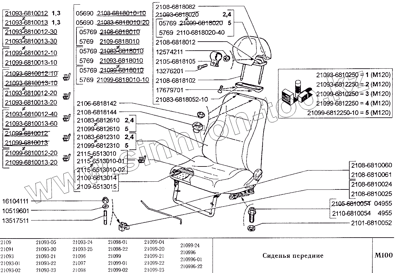 Каталог запасных частей к технике: ВАЗ-2109. Сиденья передние
