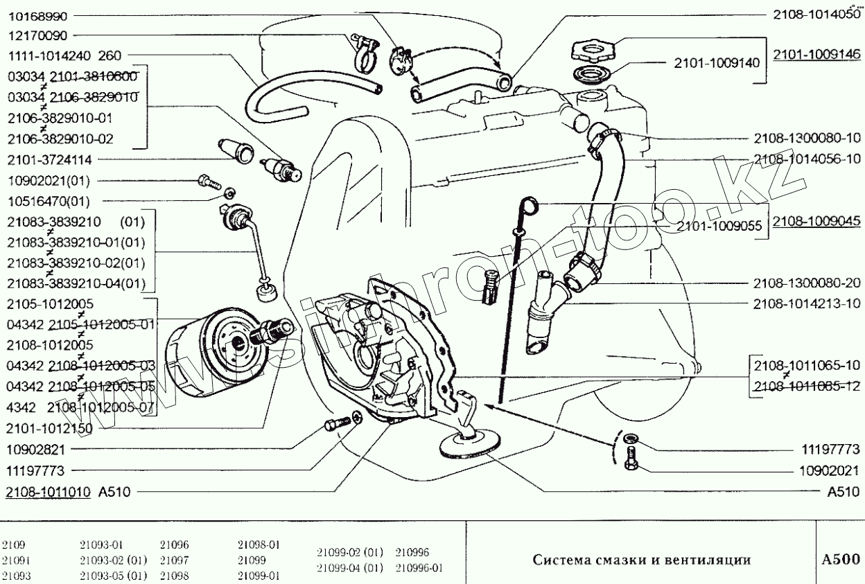 Каталог запасных частей к технике: ВАЗ-2109. Система смазки и вентиляции