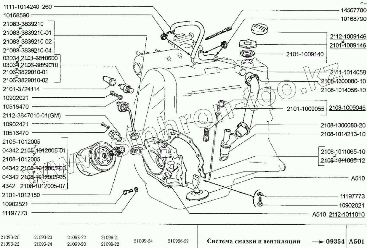 Каталог запасных частей к технике: ВАЗ-2109. Система смазки и вентиляции