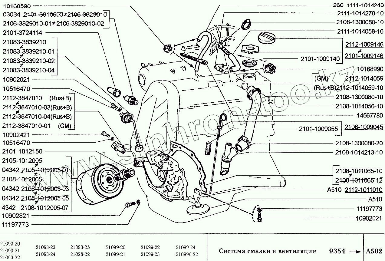 Каталог запасных частей к технике: ВАЗ-2109. Система смазки и вентиляции