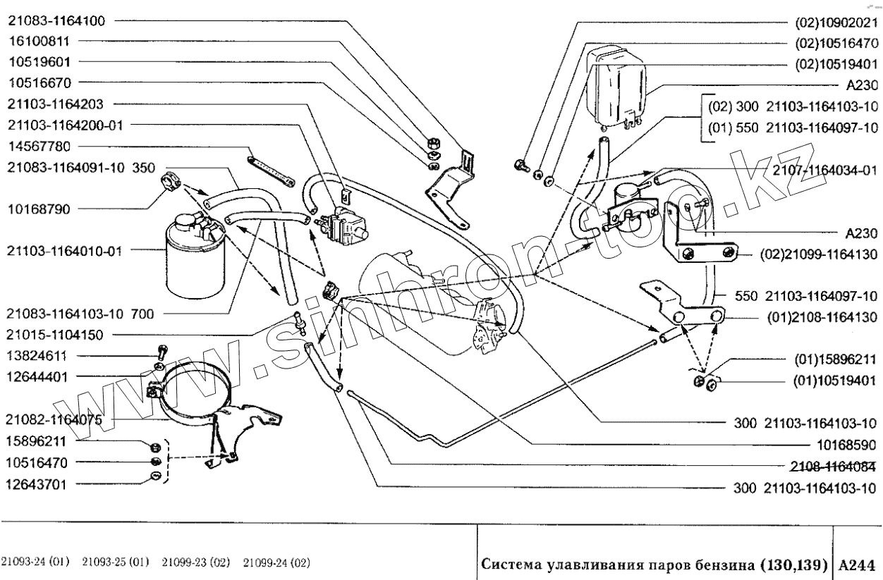 Каталог запасных частей к технике: ВАЗ-2109. Система улавливания паров бензина (130, 139)