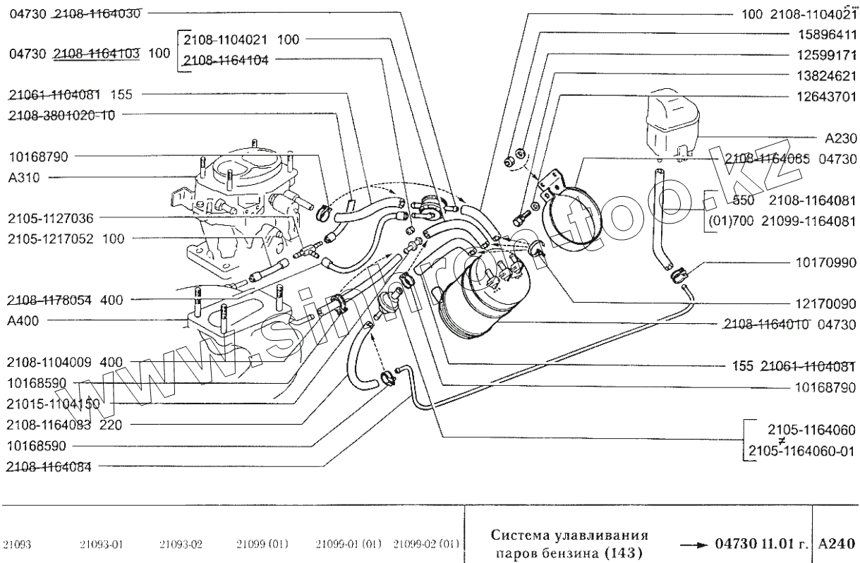 Каталог запасных частей к технике: ВАЗ-2109. Система улавливания паров бензина (143)