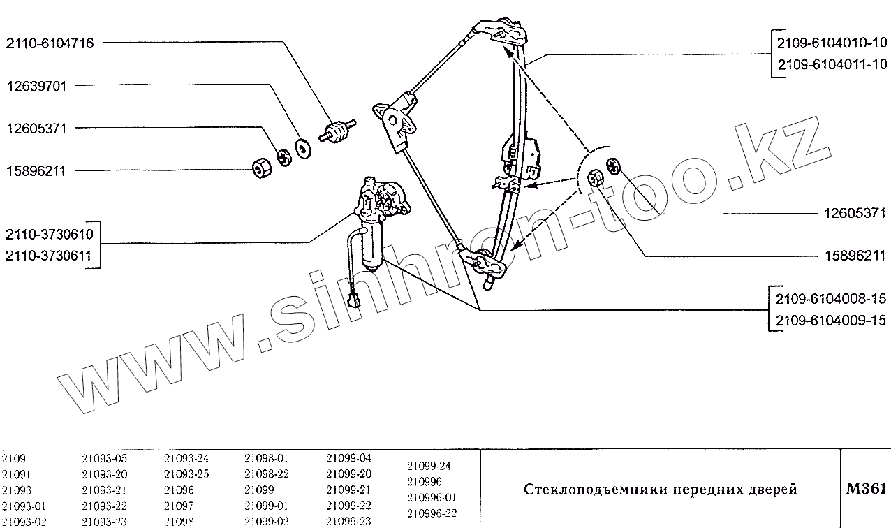 Каталог запасных частей к технике: ВАЗ-2109. Стеклоподъемники передних дверей