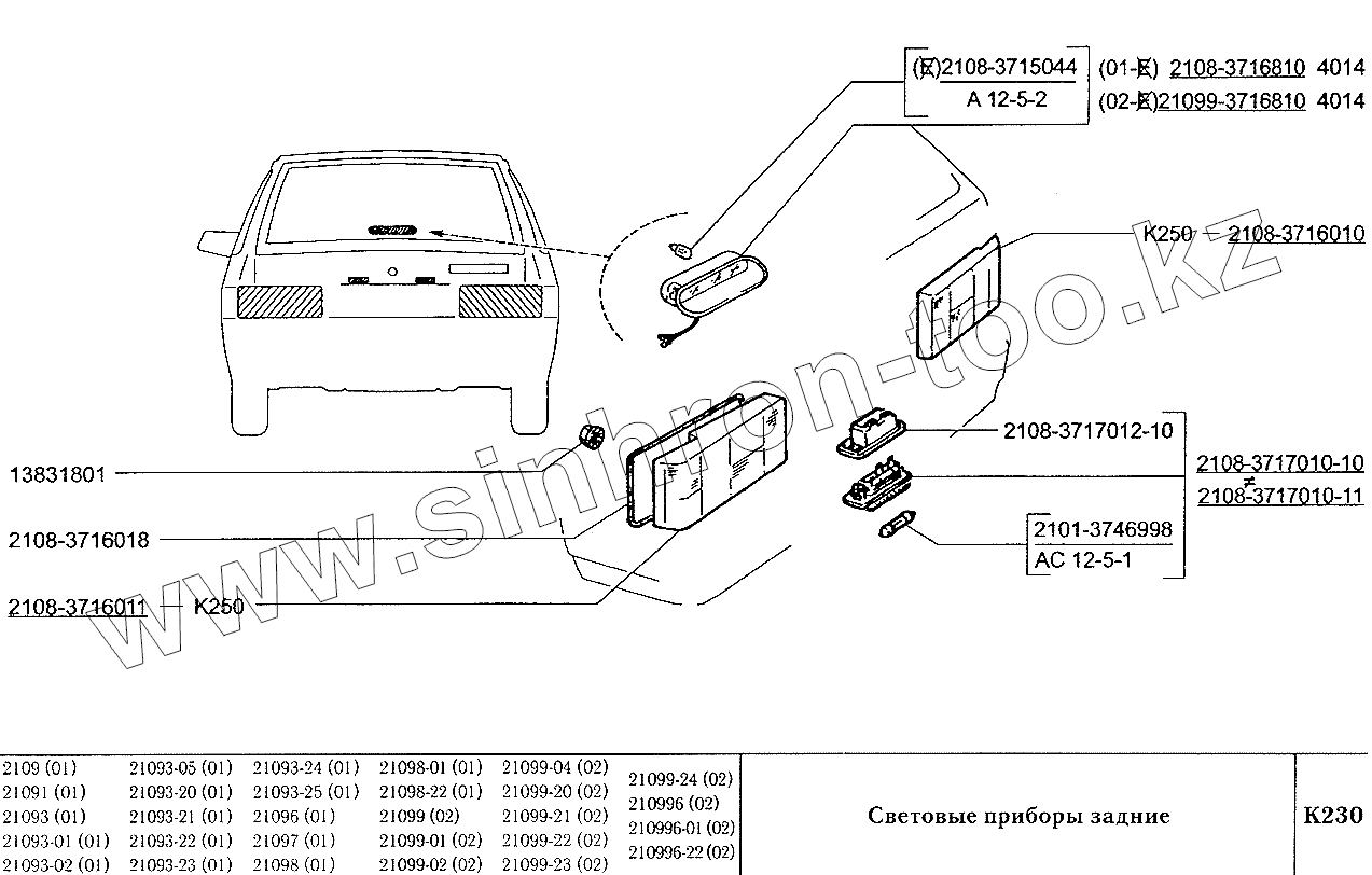 Каталог запасных частей к технике: ВАЗ-2109. Световые приборы задние