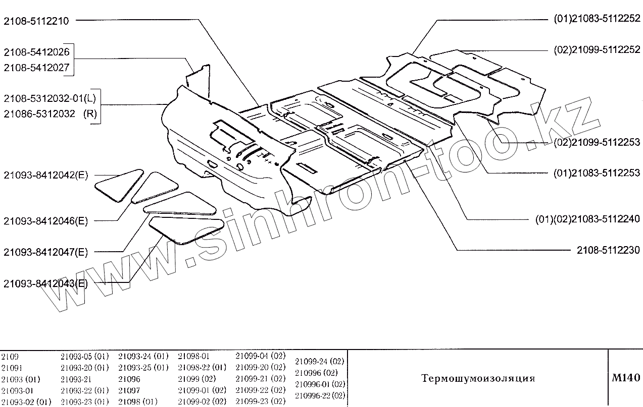Каталог запасных частей к технике: ВАЗ-2109. Термошумоизоляция