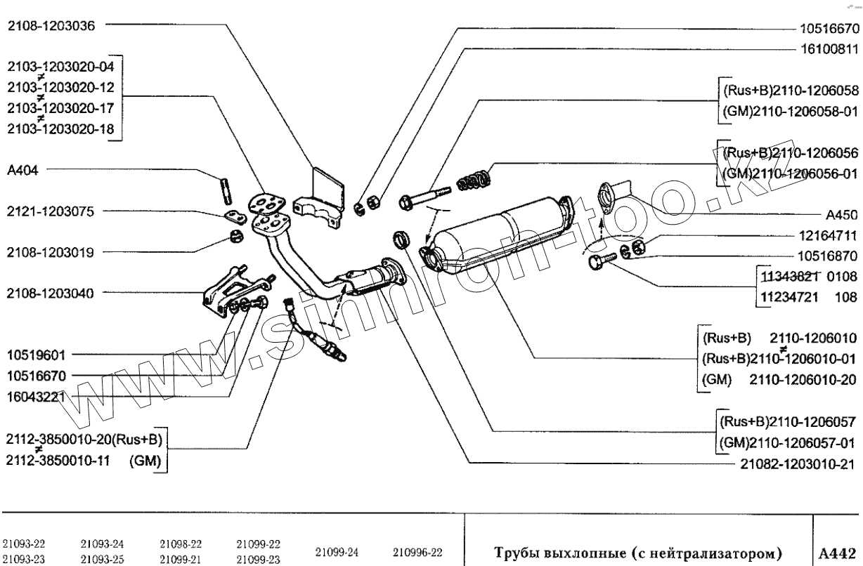 Каталог запасных частей к технике: ВАЗ-2109. Трубы выхлопные (с нейтрализатором)
