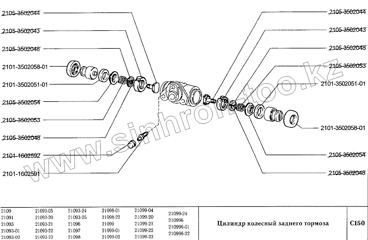 Каталог запасных частей к технике: ВАЗ-2109. Цилиндр колесный заднего тормоза