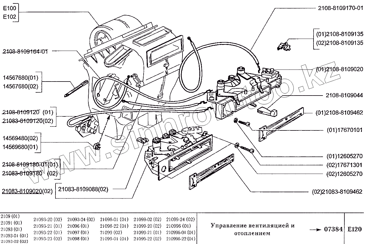 Каталог запасных частей к технике: ВАЗ-2109. Управление вентиляцией и отоплением