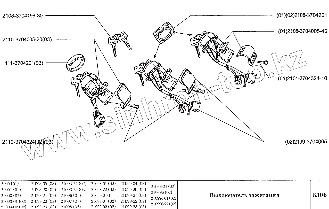 Каталог запасных частей к технике: ВАЗ-2109. Выключатель зажигания