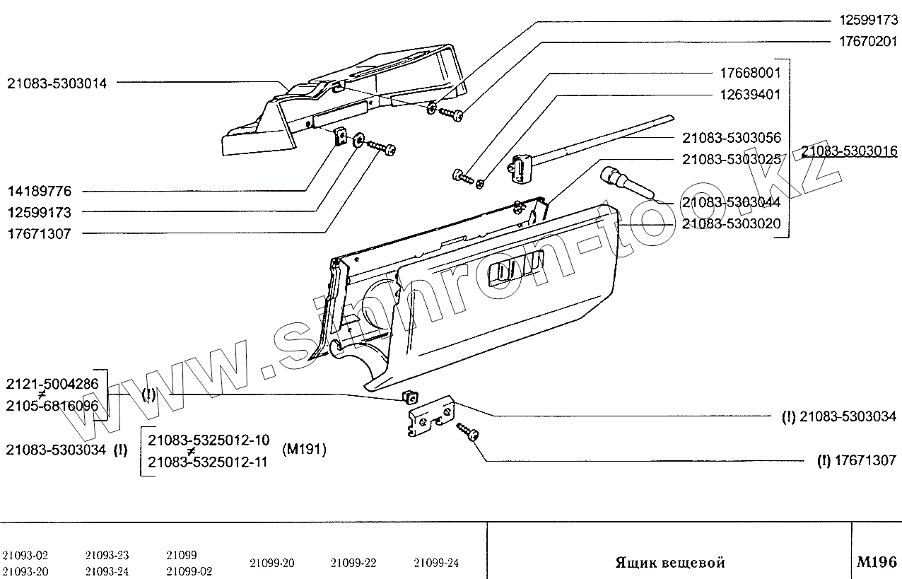 Каталог запасных частей к технике: ВАЗ-2109. Ящик вещевой