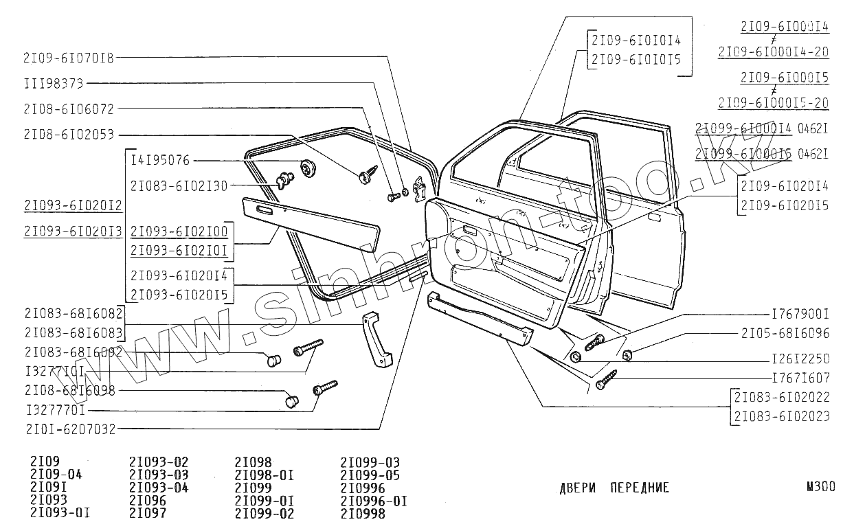 Каталог запасных частей к технике: ВАЗ-2109. Двери передние