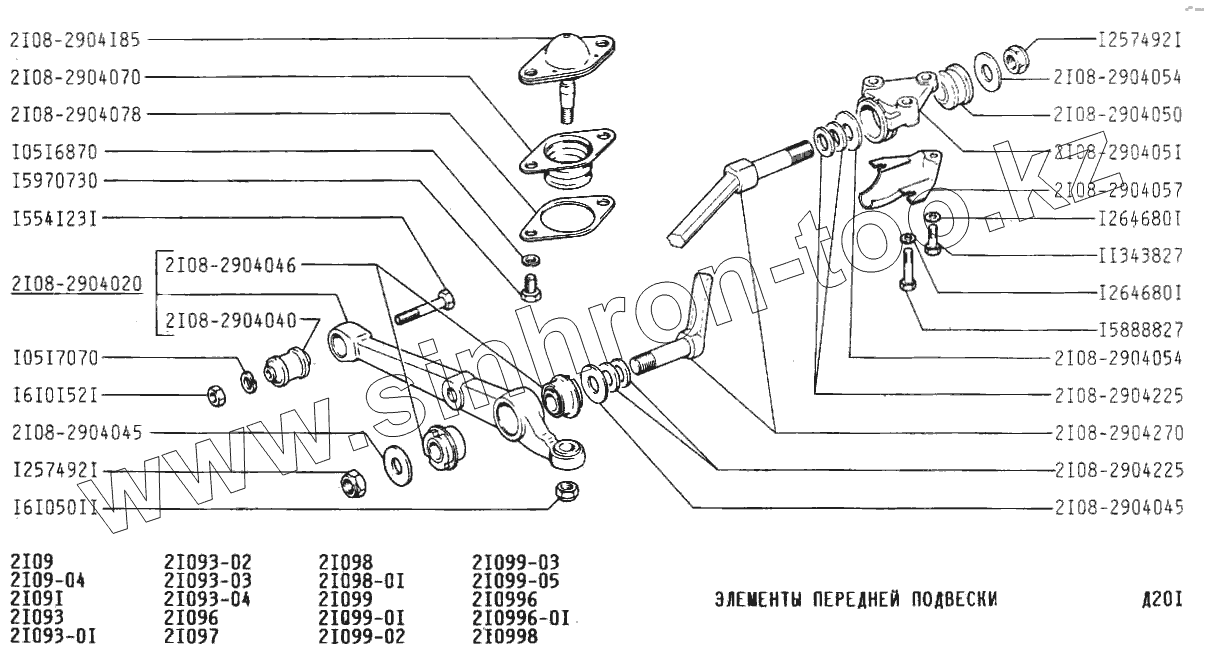 Каталог запасных частей к технике: ВАЗ-2109. Элементы передней подвески