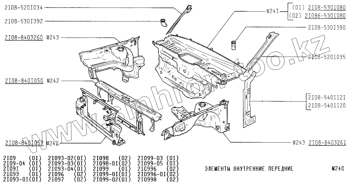 Каталог запасных частей к технике: ВАЗ-2109. Элементы внутренние передние