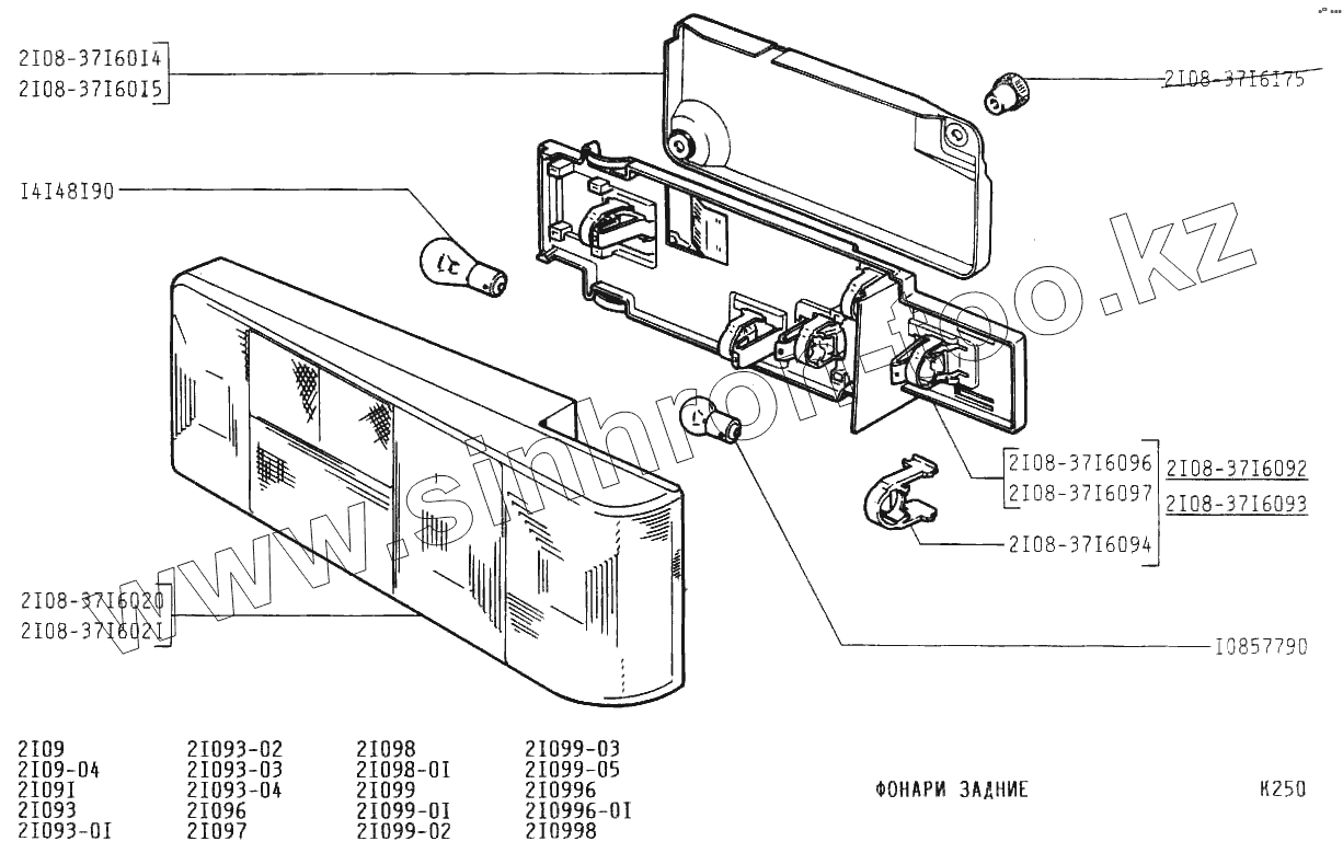 Каталог запасных частей к технике: ВАЗ-2109. Фонари задние