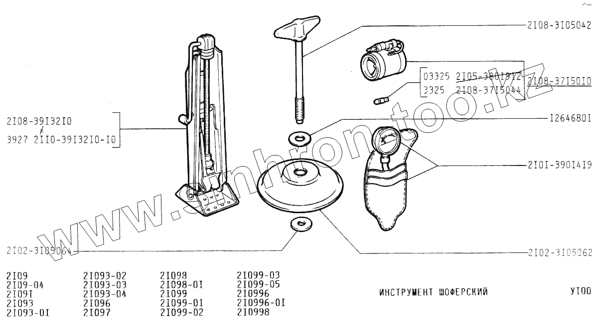 Каталог запасных частей к технике: ВАЗ-2109. Инструмент шоферский