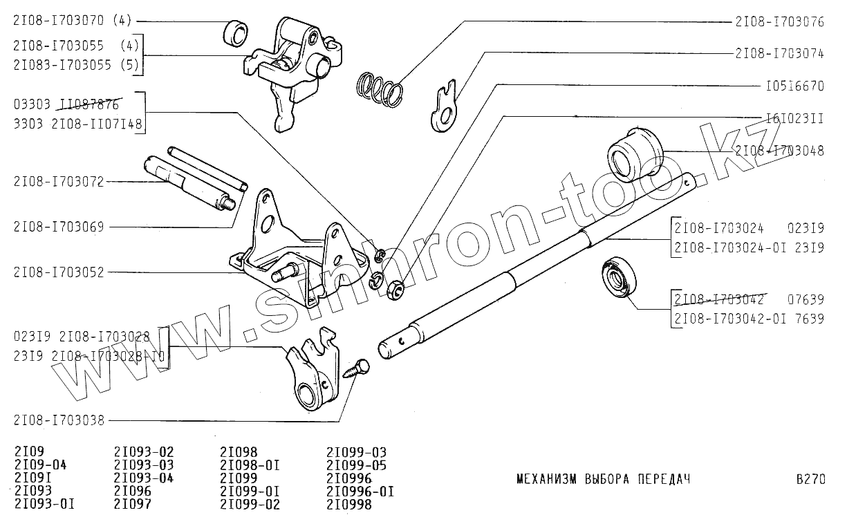 Каталог запасных частей к технике: ВАЗ-2109. Механизм выбора передач