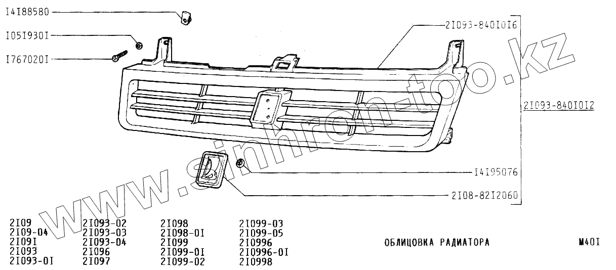 Каталог запасных частей к технике: ВАЗ-2109. Облицовка радиатора