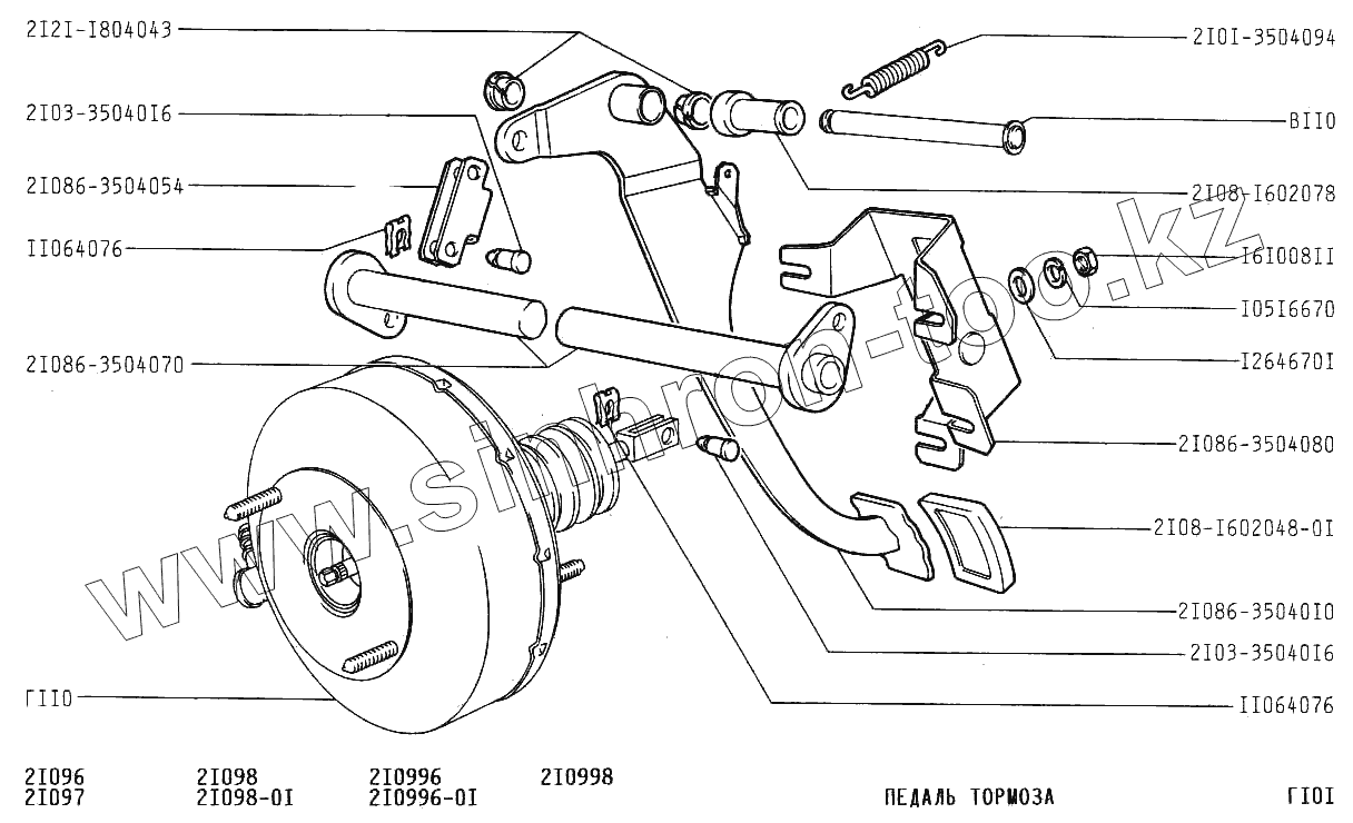 Каталог запасных частей к технике: ВАЗ-2109. Педаль тормоза