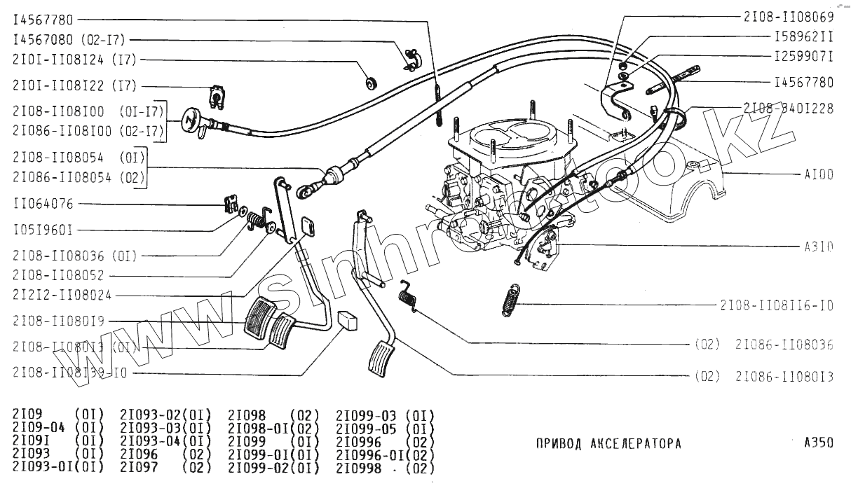 Каталог запасных частей к технике: ВАЗ-2109. Привод акселератора