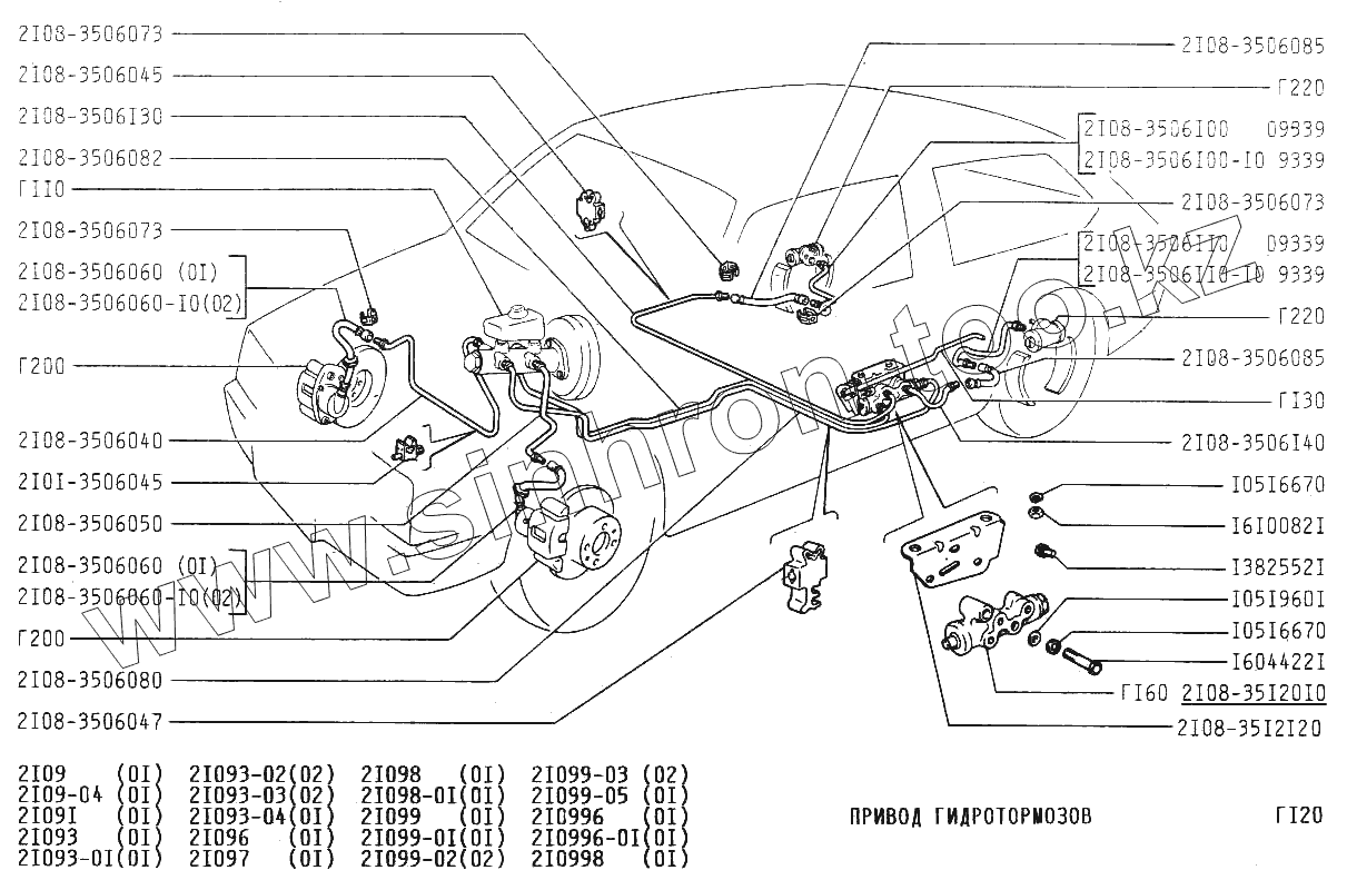 Каталог запасных частей к технике: ВАЗ-2109. Привод гидротормозов