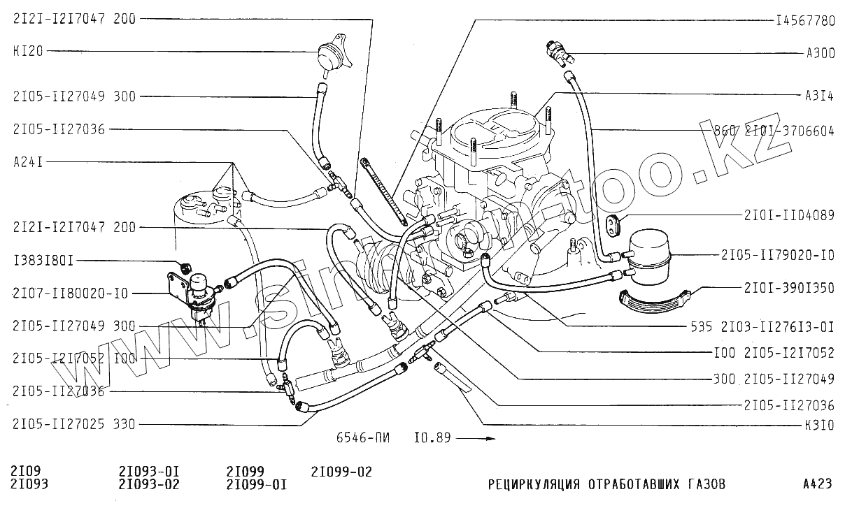 Каталог запасных частей к технике: ВАЗ-2109. Рециркуляция отработавших газов