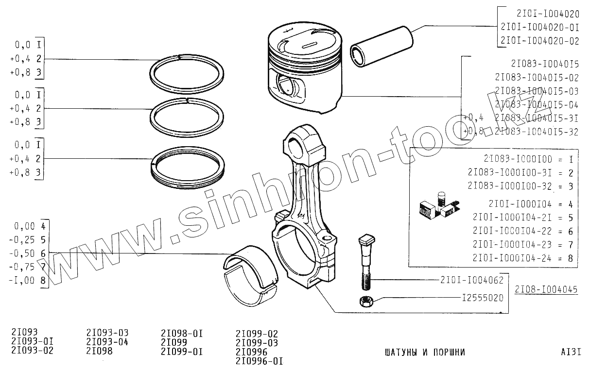 Каталог запасных частей к технике: ВАЗ-2109. Шатуны и поршни