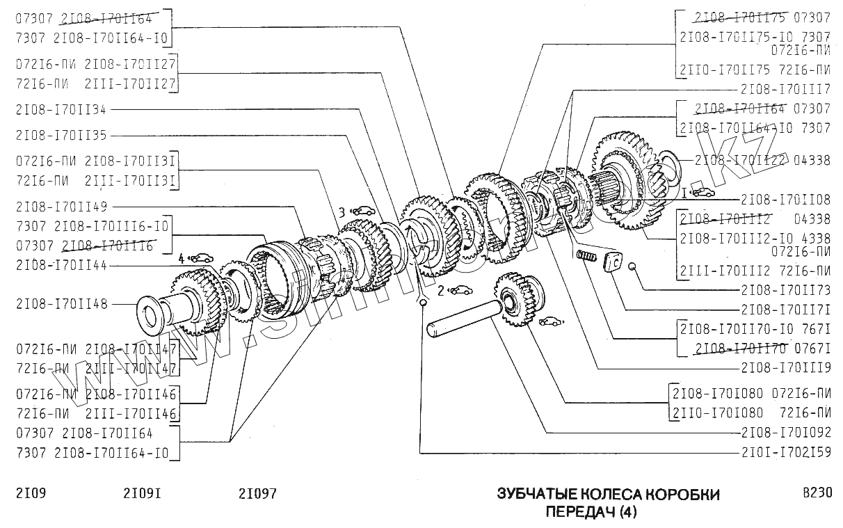 Каталог запасных частей к технике: ВАЗ-2109. Шестерни коробки передач (4)