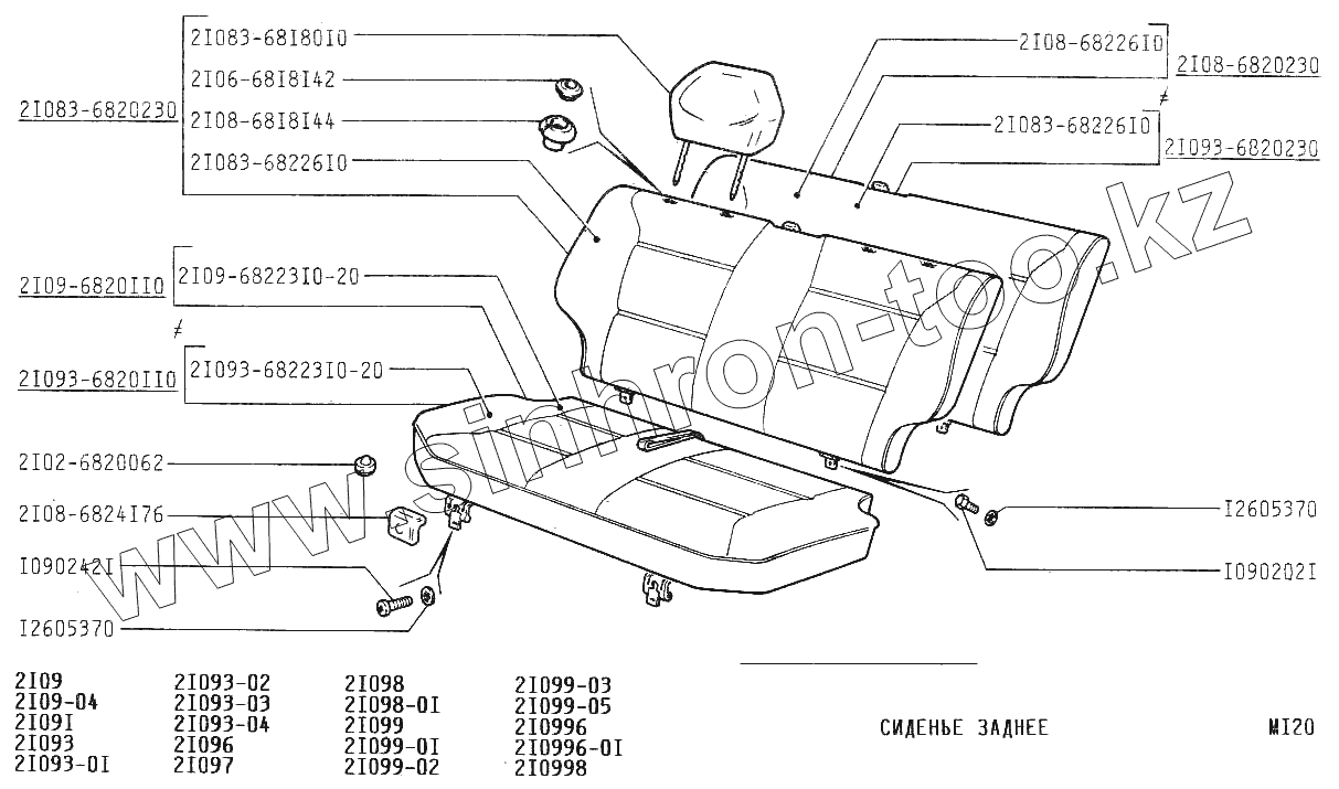 Каталог запасных частей к технике: ВАЗ-2109. Сиденье заднее