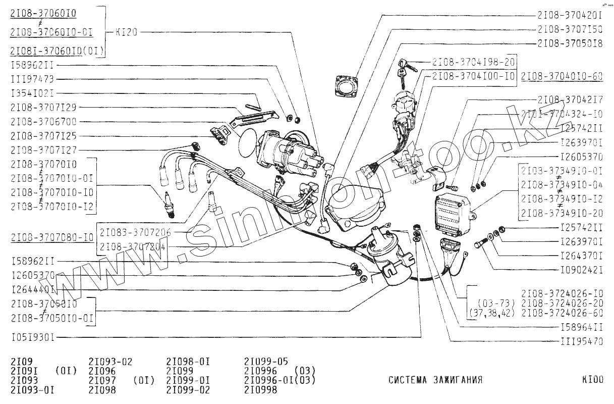 Каталог запасных частей к технике: ВАЗ-2109. Система зажигания