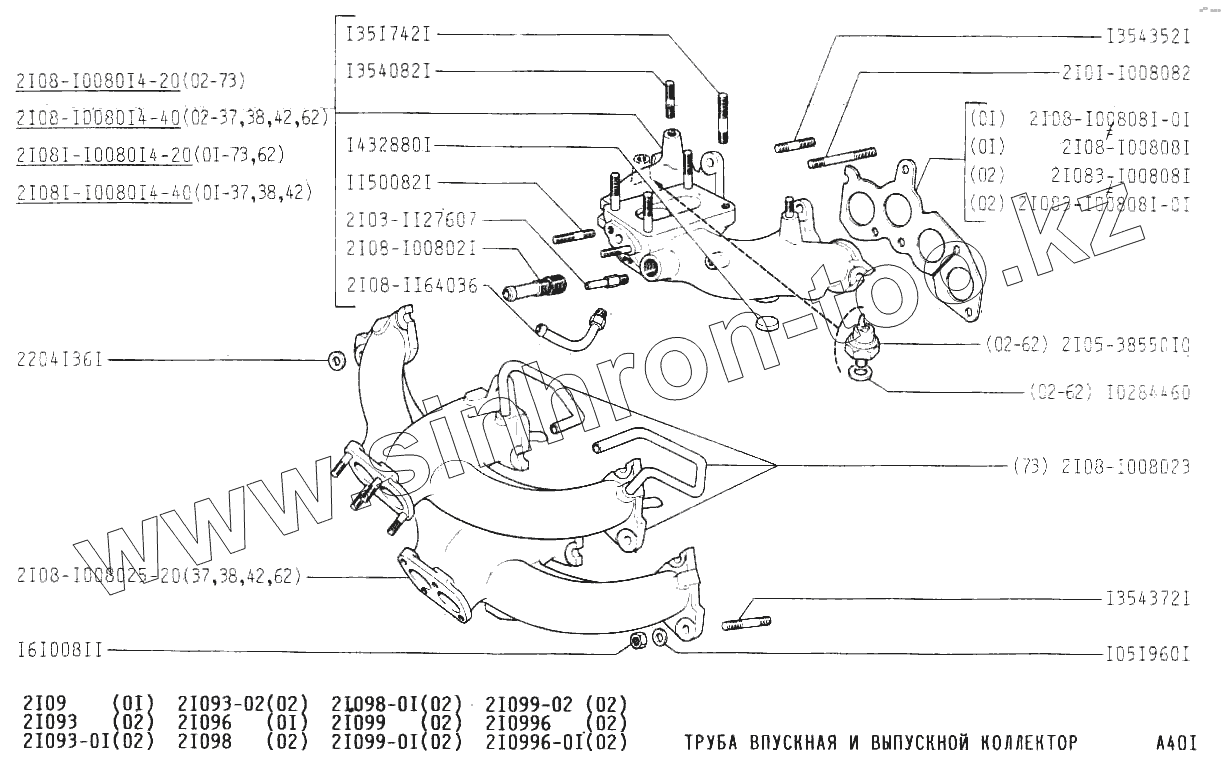 Каталог запасных частей к технике: ВАЗ-2109. Труба впускная и выпускной коллектор