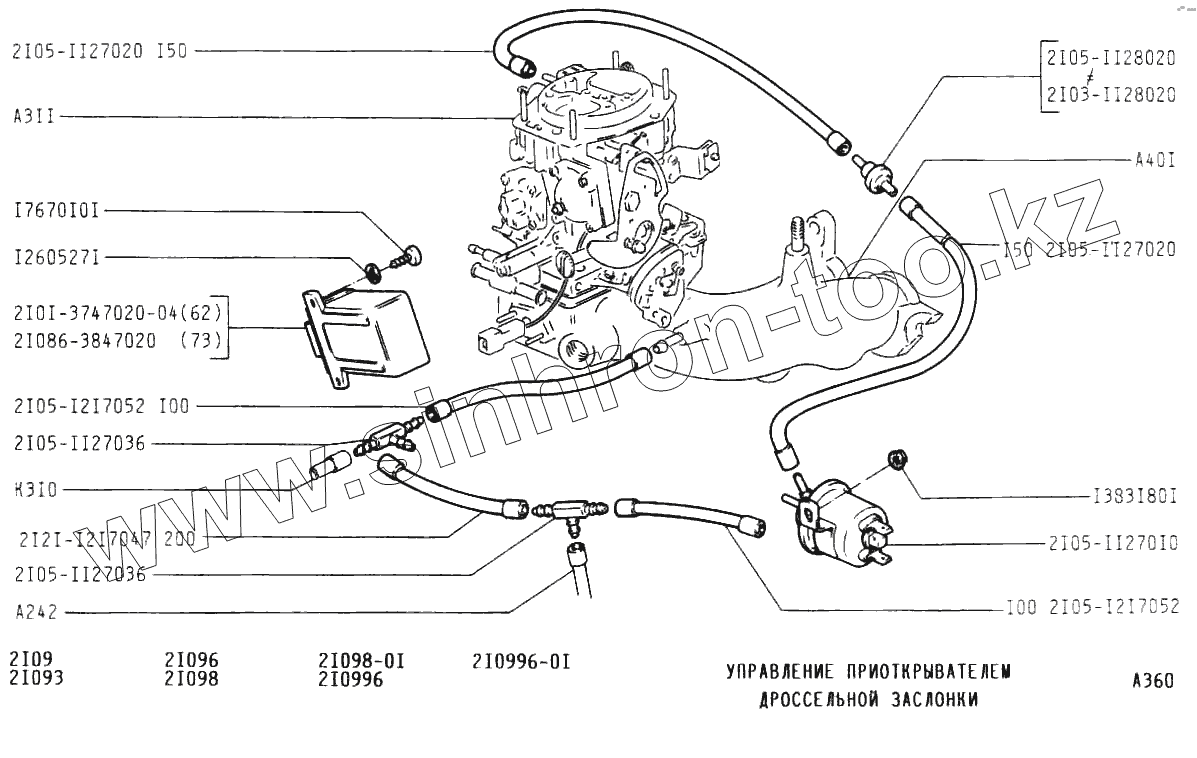 Каталог запасных частей к технике: ВАЗ-2109. Управление приоткрывателем дроссельной заслонки