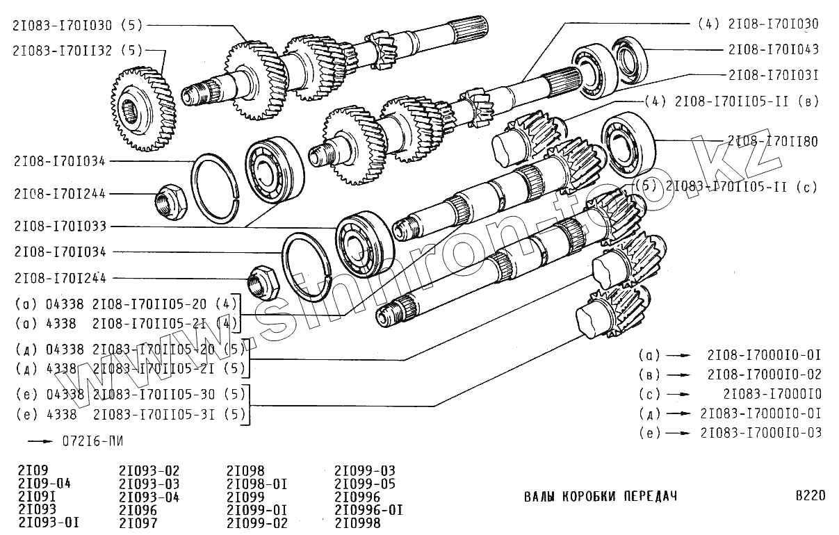 Каталог запасных частей к технике: ВАЗ-2109. Валы коробки передач