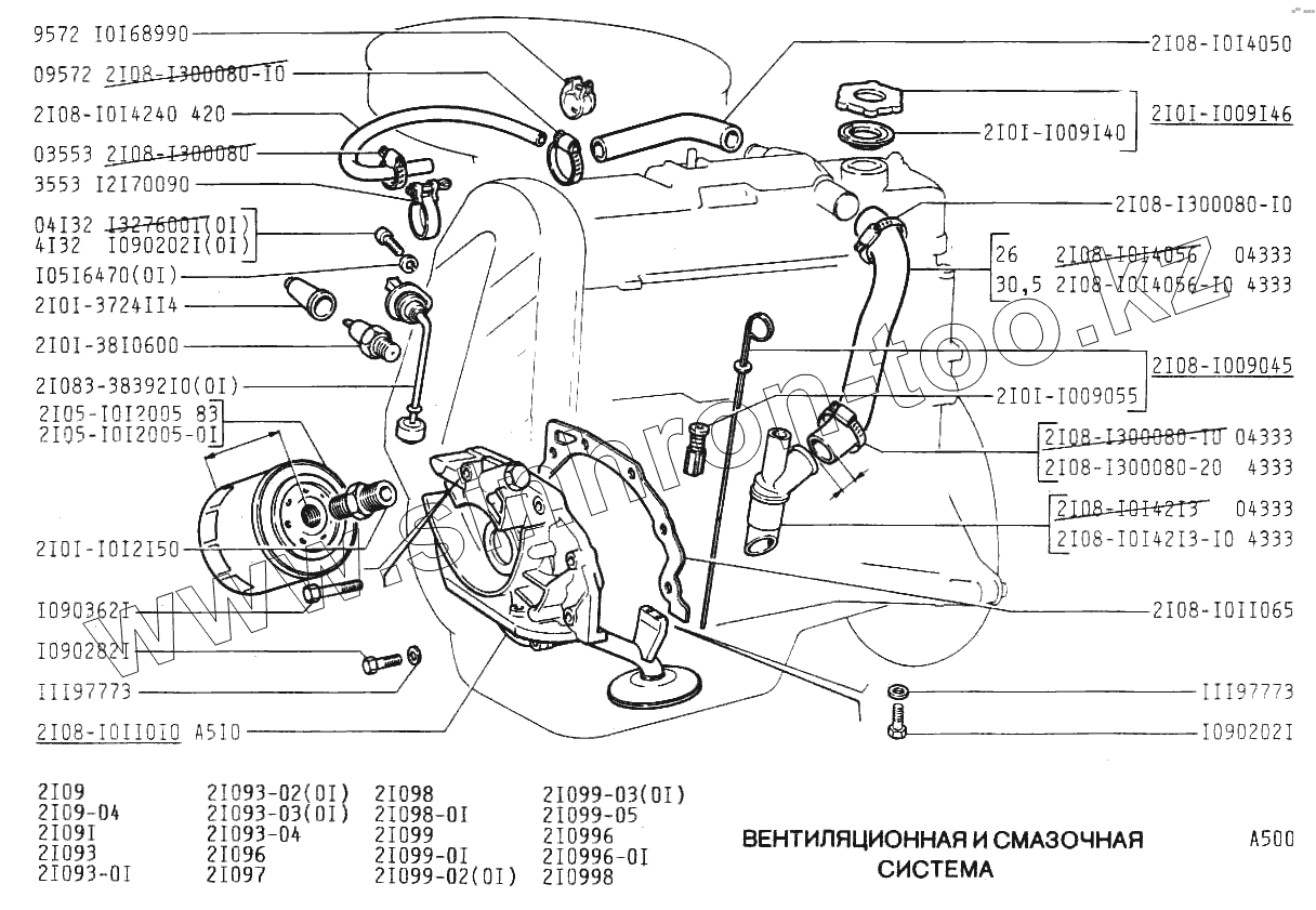 Каталог запасных частей к технике: ВАЗ-2109. Вентиляционная и смазочная система