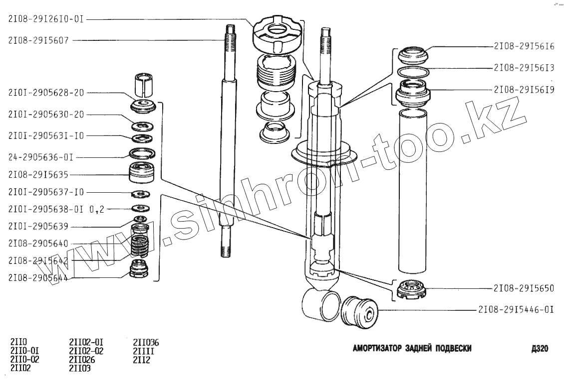Каталог запасных частей к технике: ВАЗ-2110. Амортизатор задней подвески