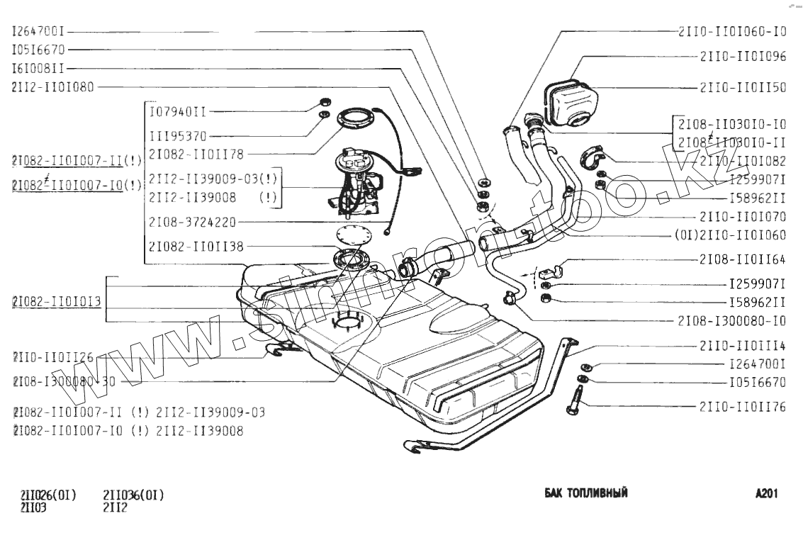 Каталог запасных частей к технике: ВАЗ-2110. Бак топливный