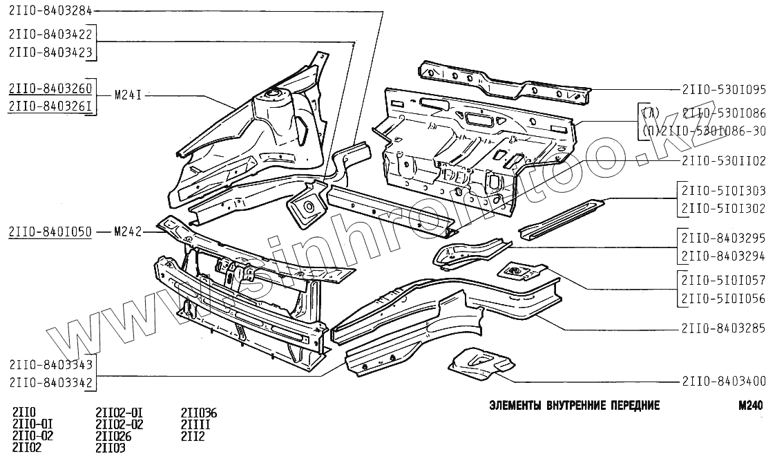 Каталог запасных частей к технике: ВАЗ-2110. Элементы внутренние передние