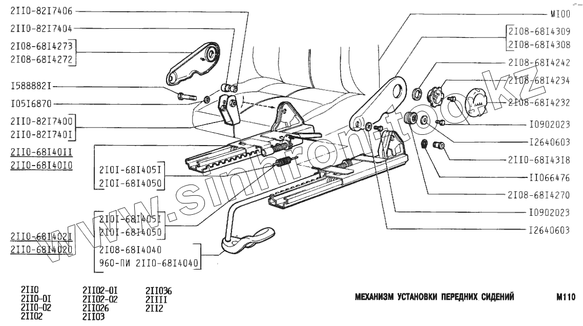 Каталог запасных частей к технике: ВАЗ-2110. Механизм установки передних сидений