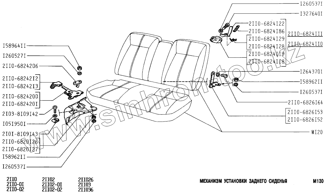 Каталог запасных частей к технике: ВАЗ-2110. Механизм установки заднего сиденья