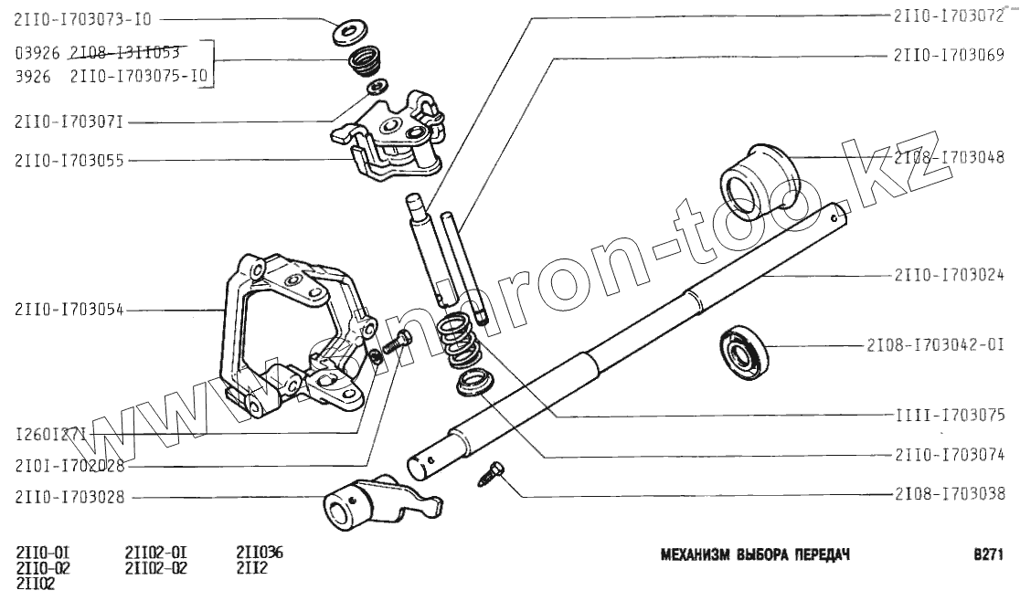 Каталог запасных частей к технике: ВАЗ-2110. Механизм выбора передач