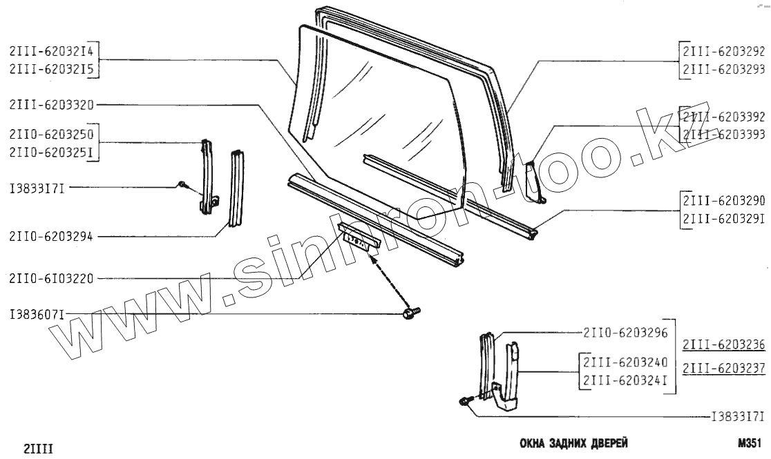 Каталог запасных частей к технике: ВАЗ-2110. Окна задних дверей