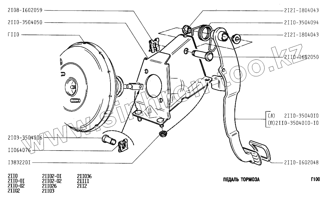 Каталог запасных частей к технике: ВАЗ-2110. Педаль тормоза