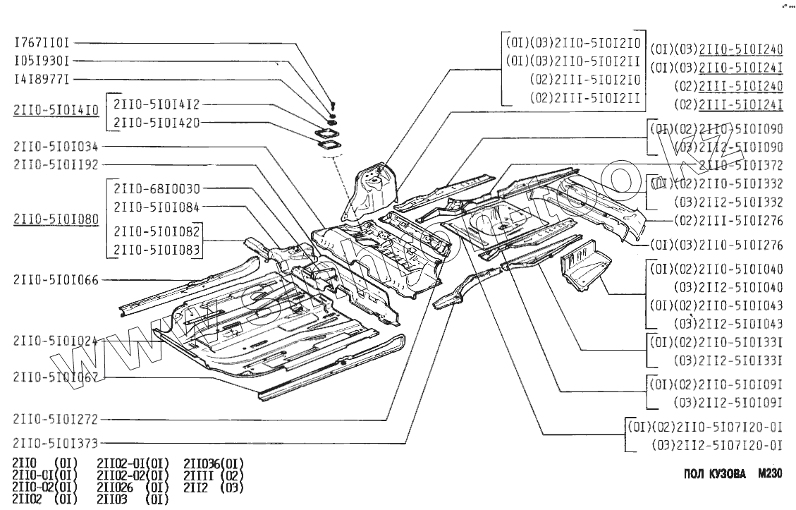 Каталог запасных частей к технике: ВАЗ-2110. Пол кузова
