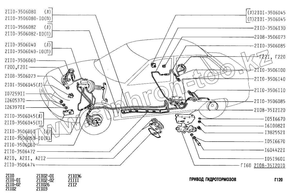 Каталог запасных частей к технике: ВАЗ-2110. Привод гидротормозов