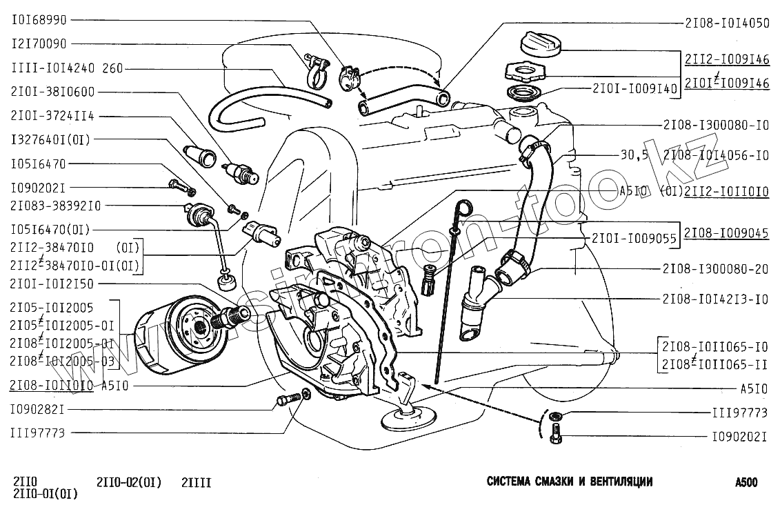 Каталог запасных частей к технике: ВАЗ-2110. Система смазки и вентиляции