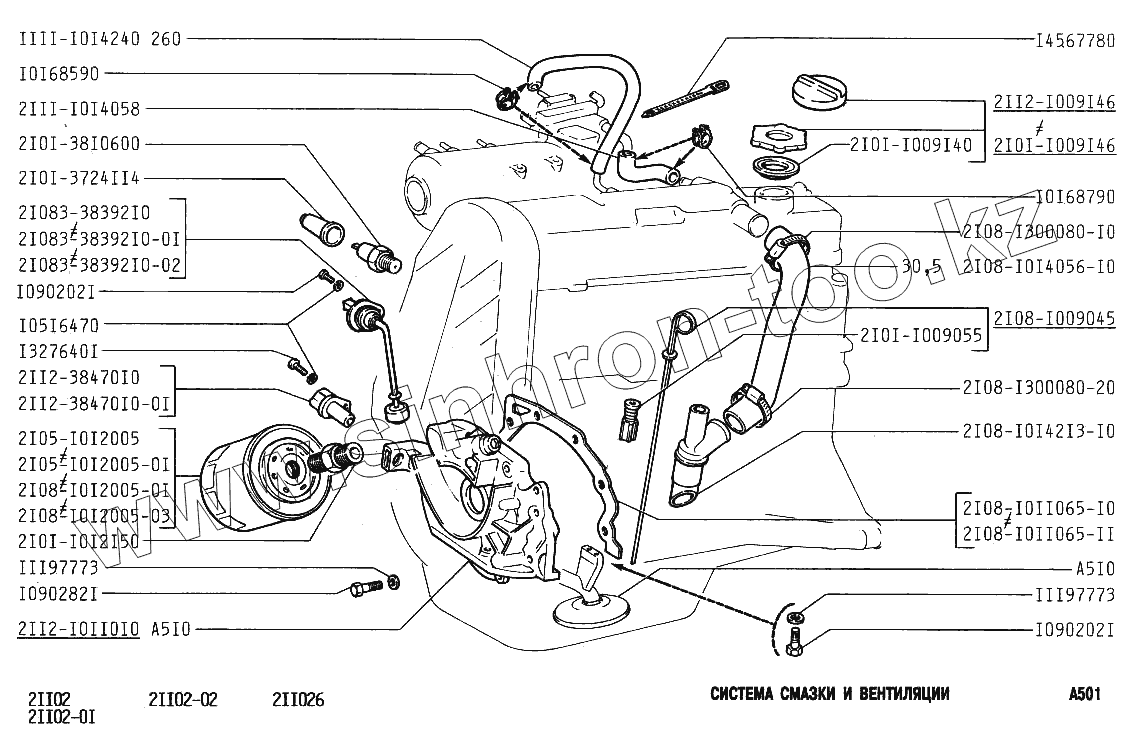 Каталог запасных частей к технике: ВАЗ-2110. Система смазки и вентиляции