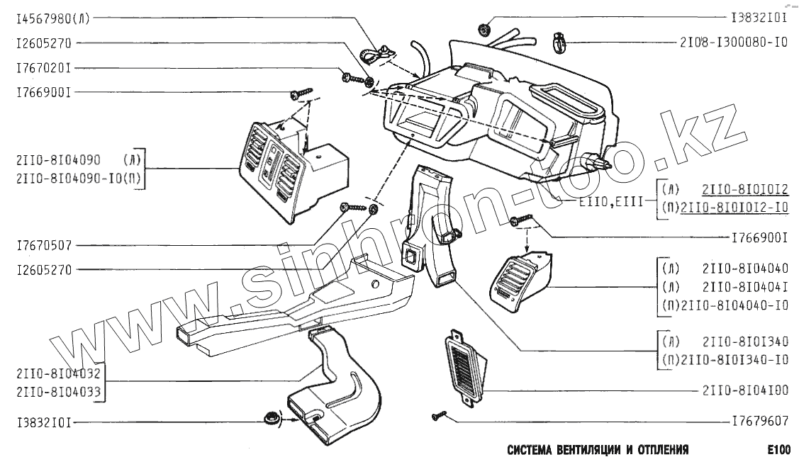 Каталог запасных частей к технике: ВАЗ-2110. Система вентиляции и отопления