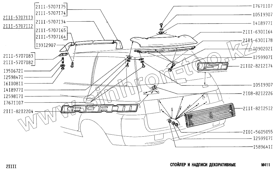 Каталог запасных частей к технике: ВАЗ-2110. Спойлер и надписи декоративные
