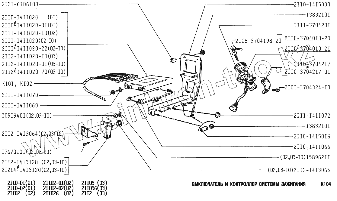 Каталог запасных частей к технике: ВАЗ-2110. Выключатель и контроллер системы зажигания